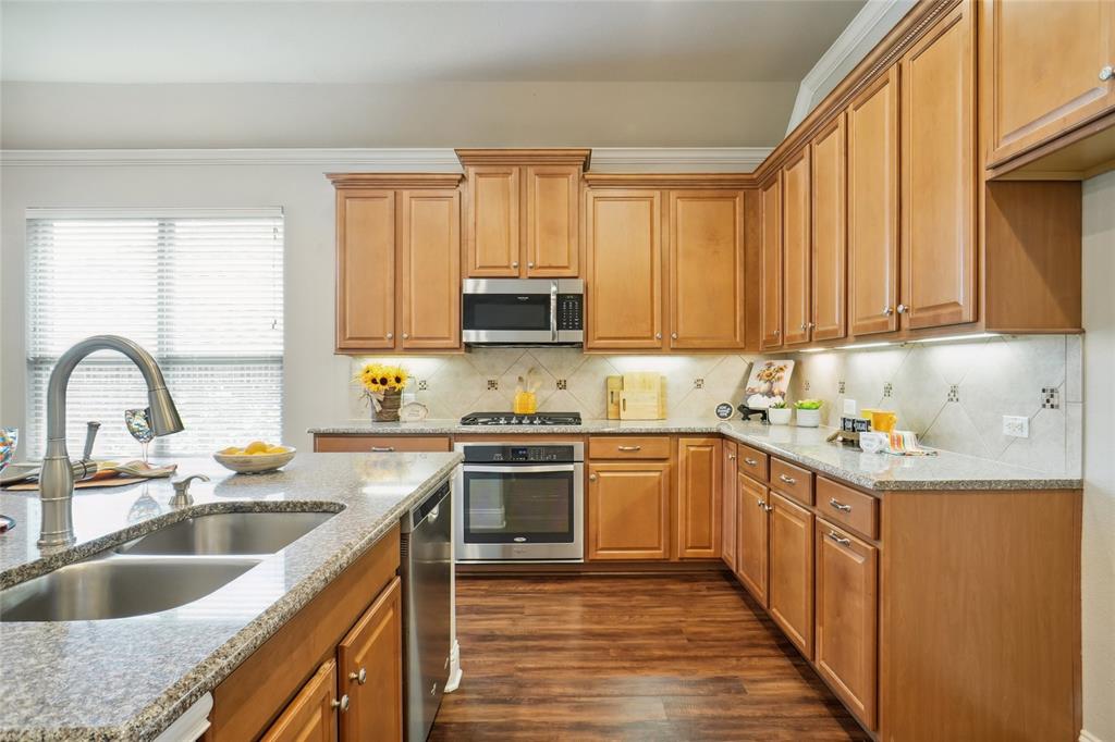 SELLER CONCESSIONS $8,000 TOWARDS BUYER(S) CLOSING COSTS, RATE BUY DOWN OR FLOORING!!! NEW carpet installed in all three bedrooms August, 2025. One of Denton's BEST KEPT secrets is this quiet, family neighborhood located in prominent Tuscan Hils subdivision near Unicorn Lake! Well maintained single story home, 3 bed, 2 full bath, 2 car garage and backs up to a spacious greenbelt for quiet relaxation on the stone covered patio with cedar pergola. Large office (alternate space use as playroom, class or craft room) with french doors for lots of privacy, natural light and has engineered wood flooring. The dining room has chandlier, window coverings and enginered wood flooring. The large kitchen has beautiful maple cabinets, granite countertops, ceramic backsplash, SS appliances, gas cooktop and large center island with granite counter top and luxury vinyl plank flooring. Spacious, open floor plan includes kitchen and eat in kitchen areas along with a large family room with stone gas fireplace with elevated hearth, gas logs and easy access to large covered patio in the back to enjoy quiet mornings and evenings. The primary bedroom and ensuite bath, located at the front of the home, has WIC, NEW carpet, ceiling fan and window coverings. Primary bathroom includes LVP flooring, walk in shower and double vanity. The remaining two split bedrooms, located at the back of the house, are large rooms with NEW carpet, ceiling fans, window treatments and WIC. Guest bath includes granite countertops, maple cabinets, double vanity, tub shower combination and LVP flooring. Beautiful community inground pool, fitness center facing Unicorn Lake are maintained by HOA. Front & back yard grass cutting by HOA, but backyard is maintenance free with Ideal artificial turf! Located near I-35 and 2499, close to all Denton area shops, restaurants, movie theatres, churches, universities and both major airports. Check MLS documents for survey and list of seller's upgrades of $20,000 plus.